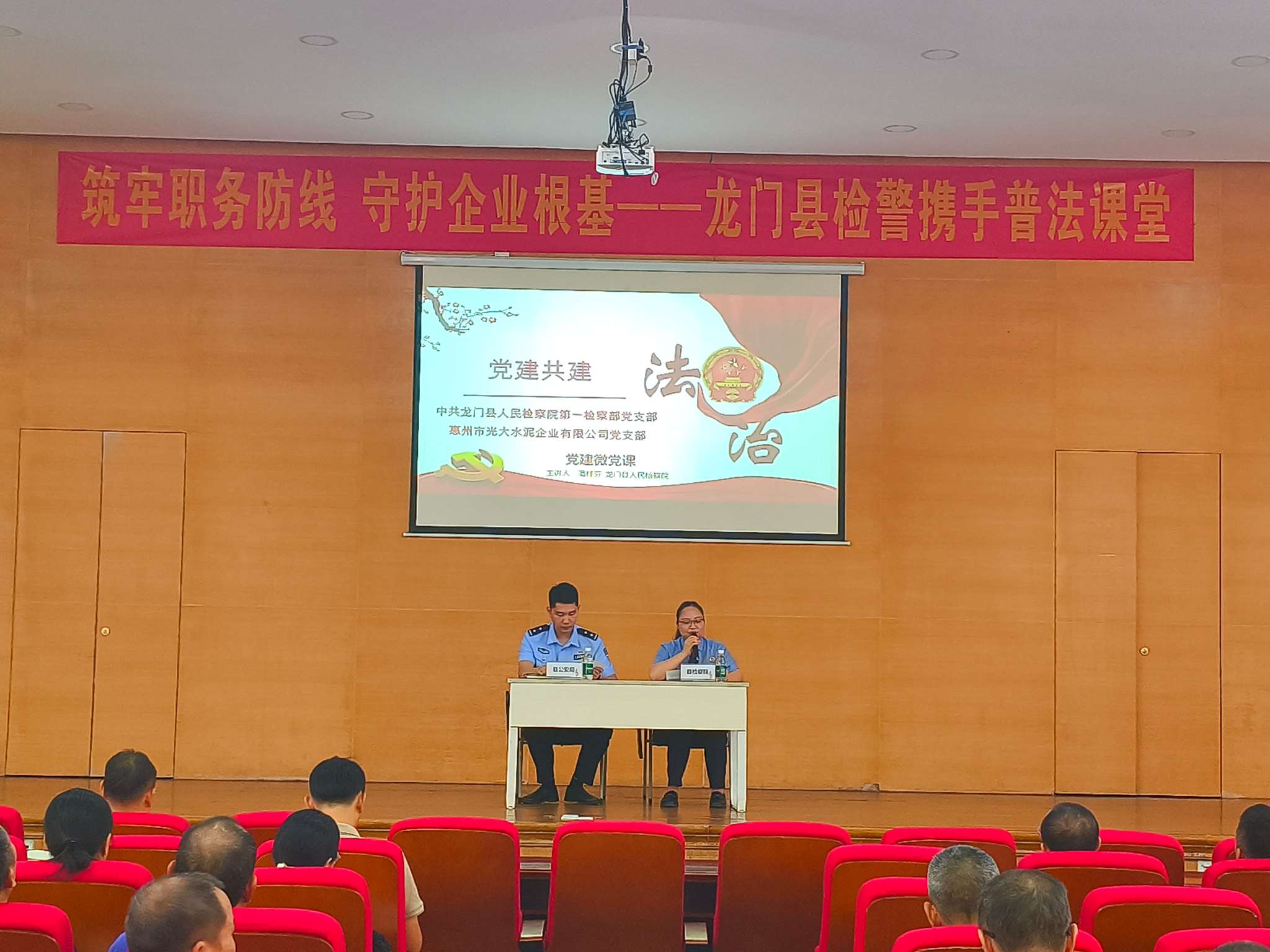 在黨建微黨課奠定的思想基礎(chǔ)上,龍門縣人民檢察院蔡檢察干警接續(xù)開展職務(wù)犯罪預(yù)防普法宣講,圍繞“筑牢職務(wù)防線,守護(hù)企業(yè)根基”主題,為員工系統(tǒng)解讀法律邊界與風(fēng)險(xiǎn)底線。