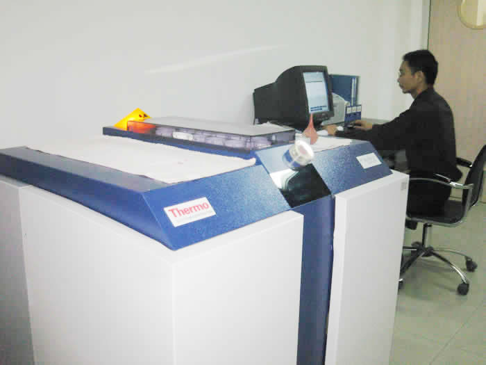 生料成分控制選用美國(guó)知名公司ADVA/VT.XP 因熒光分析儀,出廠水泥強(qiáng)度檢測(cè)選用國(guó)內(nèi)先進(jìn)的自動(dòng)抗壓及抗折試驗(yàn)機(jī)。